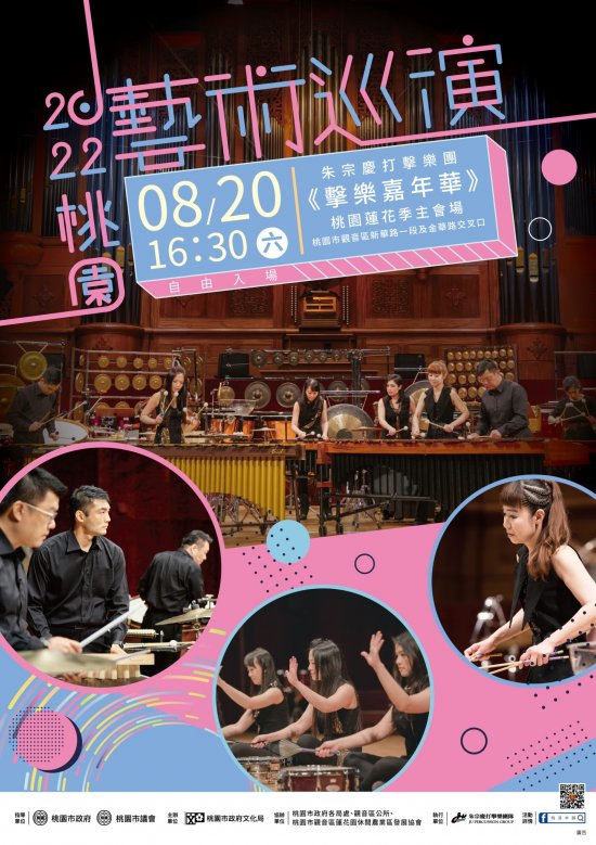 旨案預定於 111 年 8 月 20 日(星期六)下午 4 時 30 分假觀音區 2022 桃園蓮花季主會場(觀音區新華路一段及金華路交叉口)辦理朱宗慶打擊樂團《擊樂嘉年華》打擊樂演出。