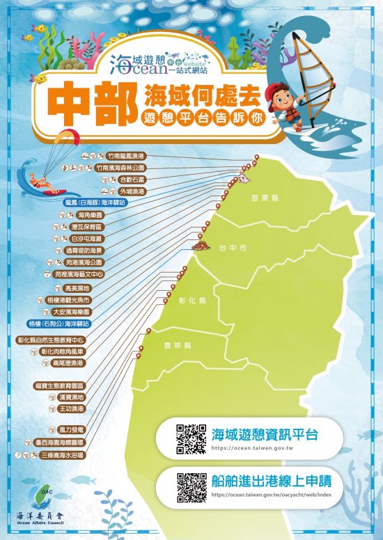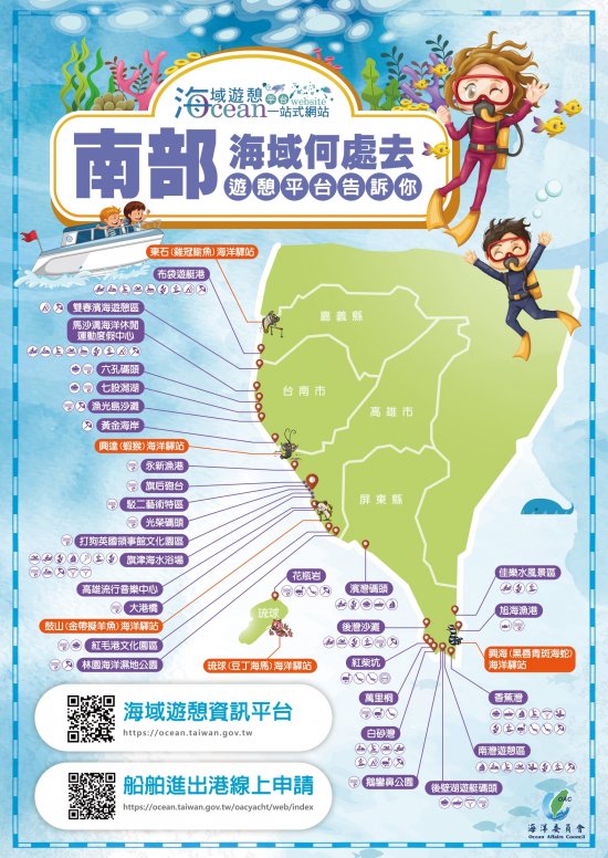 函轉海洋委員會檢送「海域遊憩活動一站式服務資訊平台」及「海洋驛站」宣傳海報(電子檔)各一份。