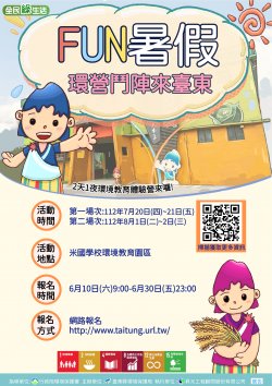 | (一) | 採網路線上報名,請至臺東縣環境教育資訊網(網址: http://www.taitung.url.tw/)報名,報名時間自 112 年 6 月 10 日 09:00 起至 6 月 30 日 23:00 截止,依照報名先後順序為錄取依據。 |