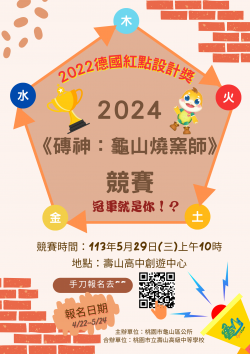 主旨: | 為辦理 2024 《磚神:龜山燒窯師》競賽活動一案,詳如說明,敬請踴躍報名,請查照。 |