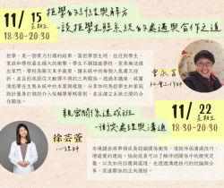 為增進本市教師全人成長及自我覺察,且有機會紓解工作壓 力以達身心健康之效,國立臺北教育大學(心理諮商暨健康 促進研究中心)自 113 年 9 月 22 日至 11 月 28 日止,規劃辦理 4 場 次實體工作坊及 5 場次教師線上研習課程。倘有需求之教師,可逕至本局教師諮商輔導支持服務網站「最新消息」( https://ttsc.whjhs.tyc.edu.tw/news/ )參閱課程資訊,並依課程說明至相應網址完成報名程序。 |