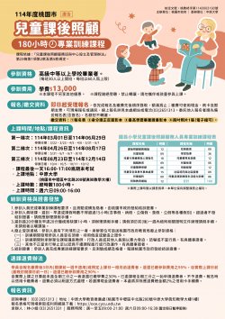 轉知中原大學辦理之「桃園市114年度兒童課後照顧服務人員180小時專業訓練課程」簡章及報名表