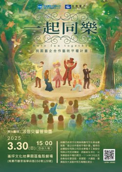 「一起同樂-桃園藝企合作藝術平權計畫」 114年 3 月 30 日(星期日)下午 3 點歡迎來觀音區崙坪文化地景園區龜殼劇場欣賞由「汲音交響管樂團」帶來的精彩演出! ◆ 演出簡介:桃園市政府文化局與桃園市文化基金會共同推動「藝企合作藝術平權計畫」獲得台益豐股份有限公司及金寶電子工業股份有限公司支持贊助,將藝術生活化,以落實藝術平權的理念。 114 年 3 月正式啟動前往觀音區、新屋區、大園區、復興區及大溪區共有五場精彩演出。 3月 30 日特邀「汲音交響管樂團」演出具有代表性知名曲目、經典電影動畫樂曲,希望觀音區的愛樂朋友隨著音樂搖曳,投入音樂的美妙旋律! ◆ 活動時間:114年 3 月 30 日(日) 15:00-16:00 ◆ 活動地點:觀音區崙坪文化地景園區龜殼劇場 ◆ 入場方式:自由入場 ◆ 活動詳情:搜尋「桃園市國樂團」(https://www.facebook.com/TaoyuanChineseOrchestra/)、「桃演本舖」(https://www.facebook.com/typerformanceart)Facebook 粉絲專頁 |